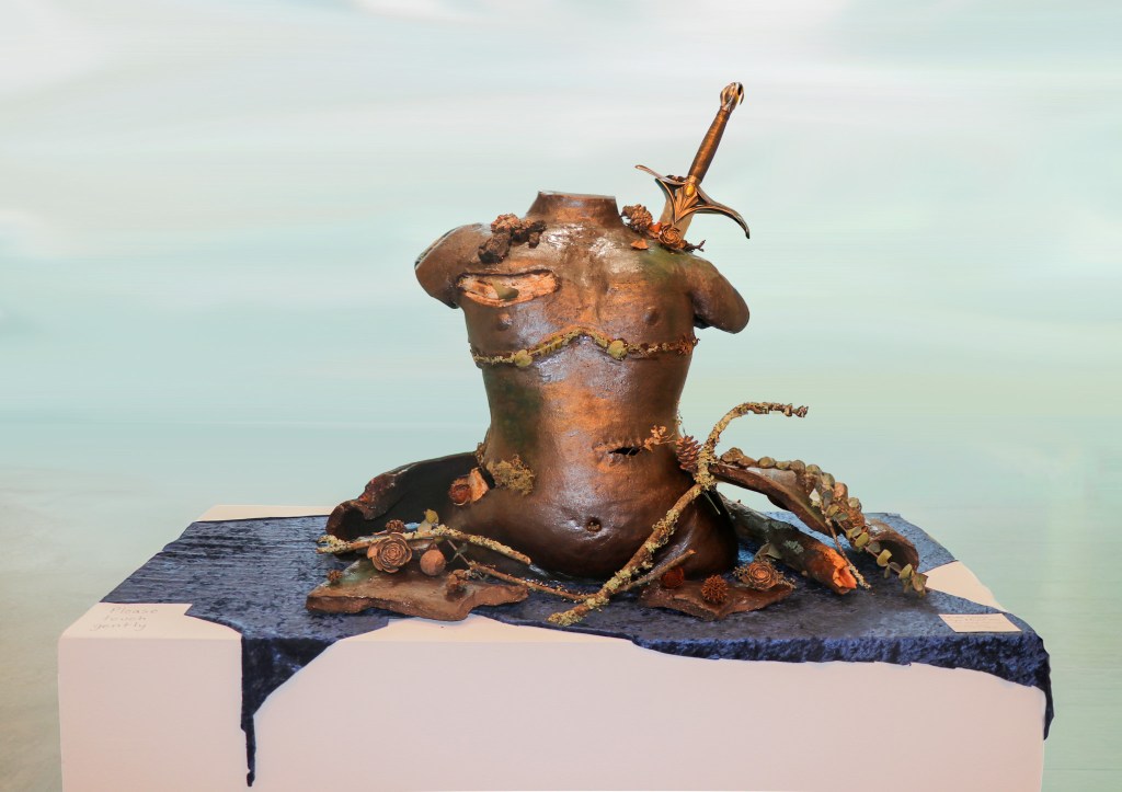 In this piece, I paired the decaying of my old body and identity with the growth of my new self. I used it to repair a part of myself that I buried as my identity flourished, showing the difficulty I had with coming out as transgender and the connection people has so deeply with a body that caused me so much pain.